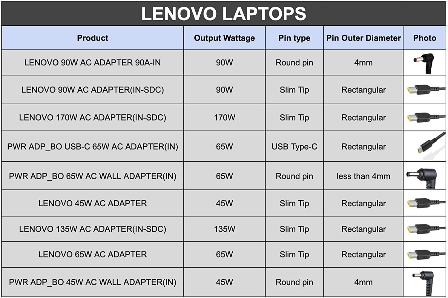 Specification: 19.5V 3.34a 65W (7.4mm outer Diameter, 5.0mm inner Diameter with central pin)